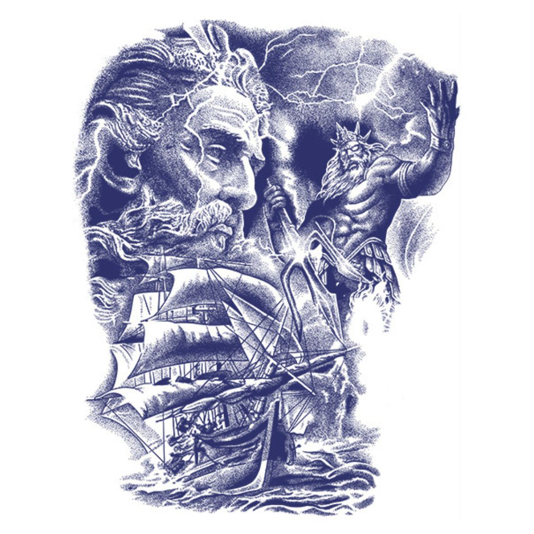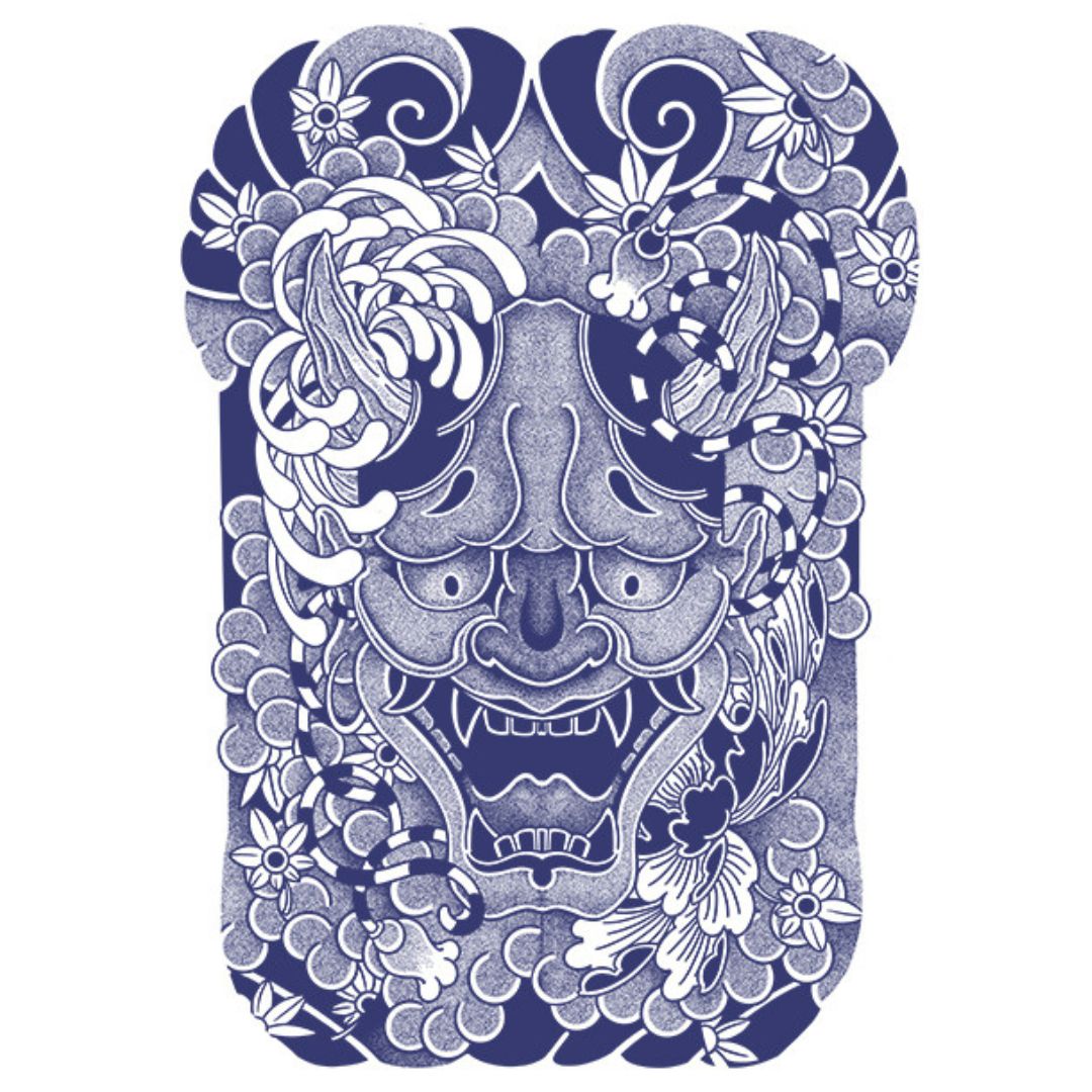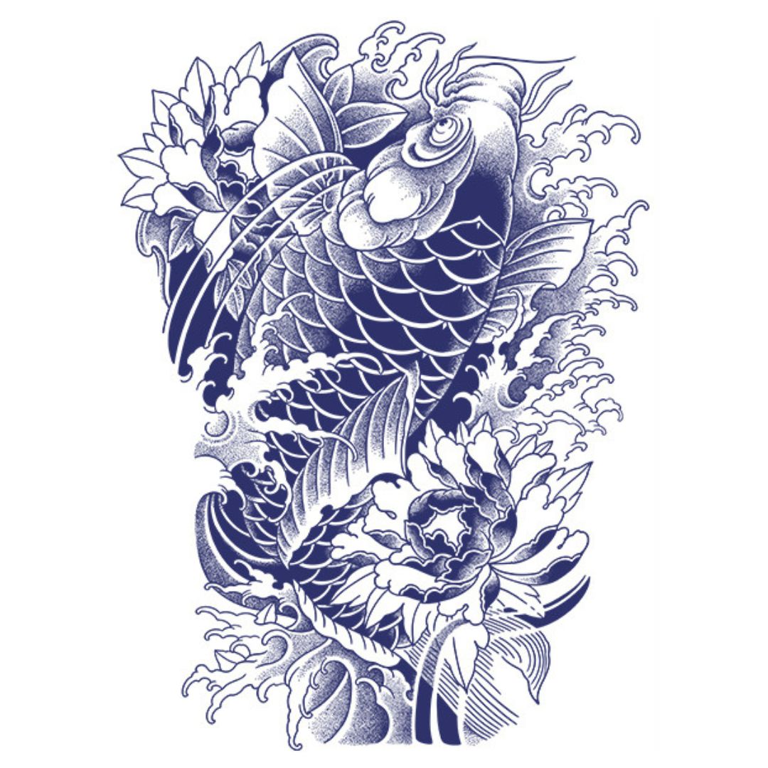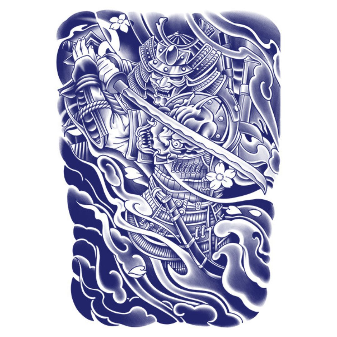 1 Sheet Fish God Viking Wing Samurai Full Back Semi-Permanent Tattoos