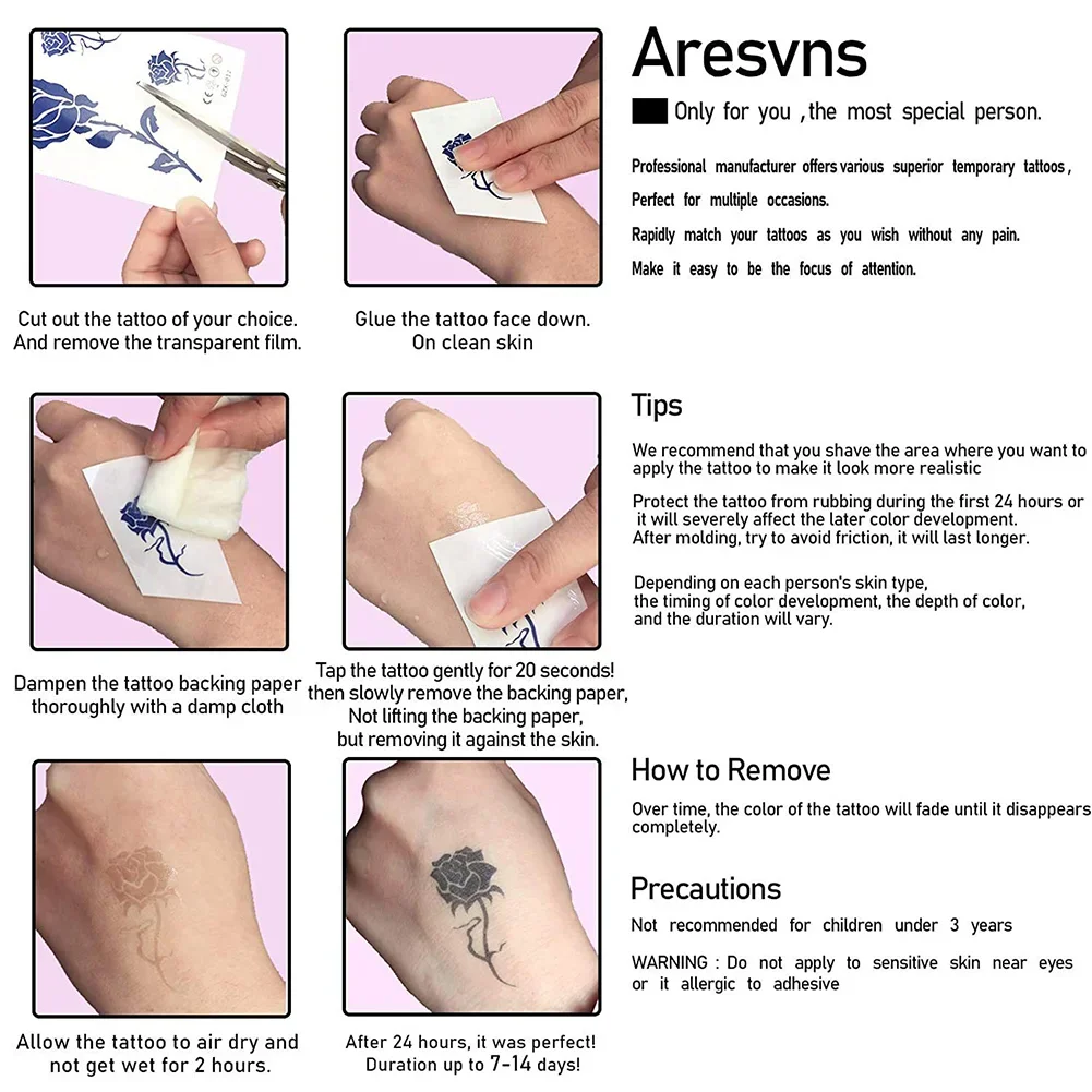 • 【DURABLE. WATERPROOF. REMOVABLE. LONG LASTING PARTY ACCESSORIES】Long lasting for over 10 days. depends on how many showers you take and how many times you scrub temporary tattoo with soap and water.