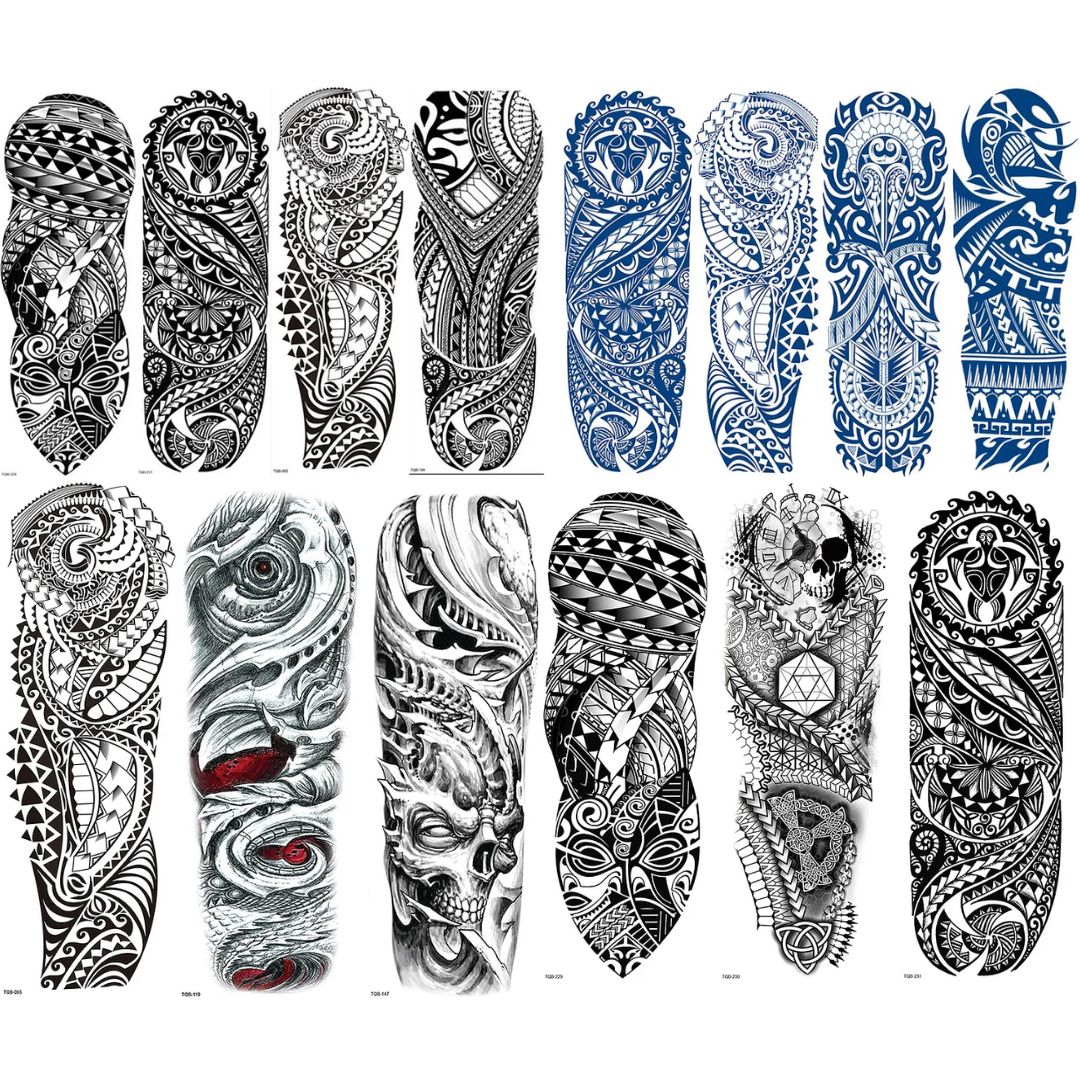 14 Sheets Full Arm Metallic Tribal Design Mechanic Temporary Tattoo Combo