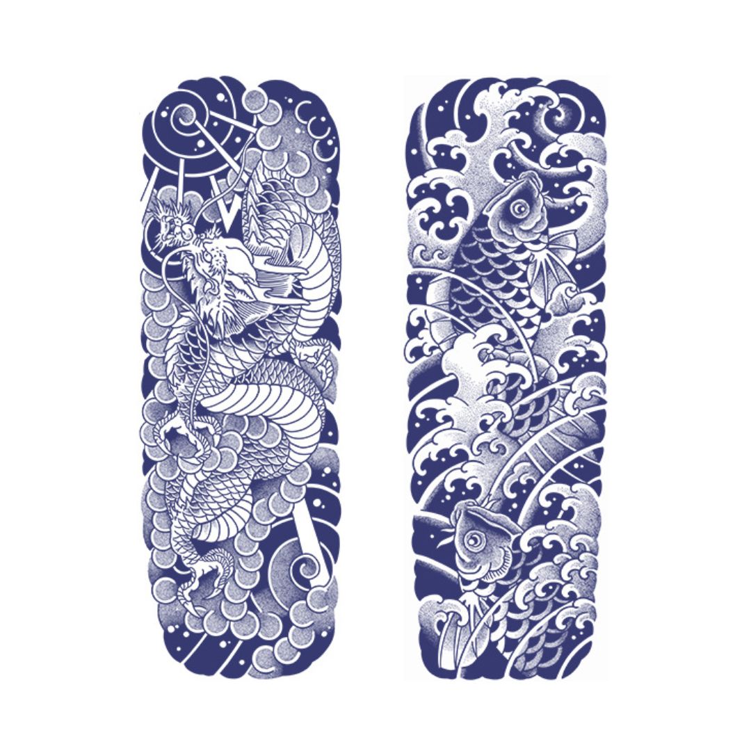 2 Sheets Dragon Fish Wave Cloud Full Arm Semi-Permanent Juice Ink Tattoo