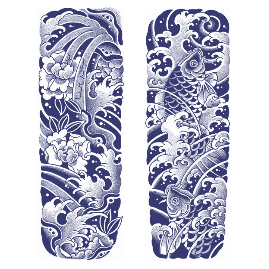 2 Sheets Fish Wave Full Arm Semi-Permanent Juice Ink Tattoo