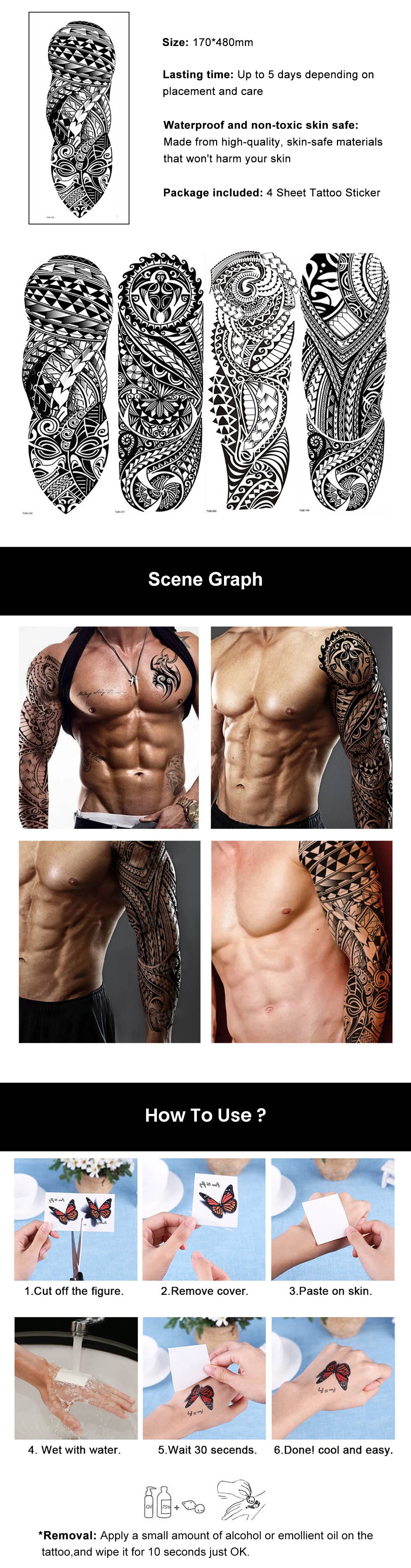 2 Sheets Full Arm Maori Totem Sleeve Black Cool 170mm * 480mm Waterproof Temporary Tattoo