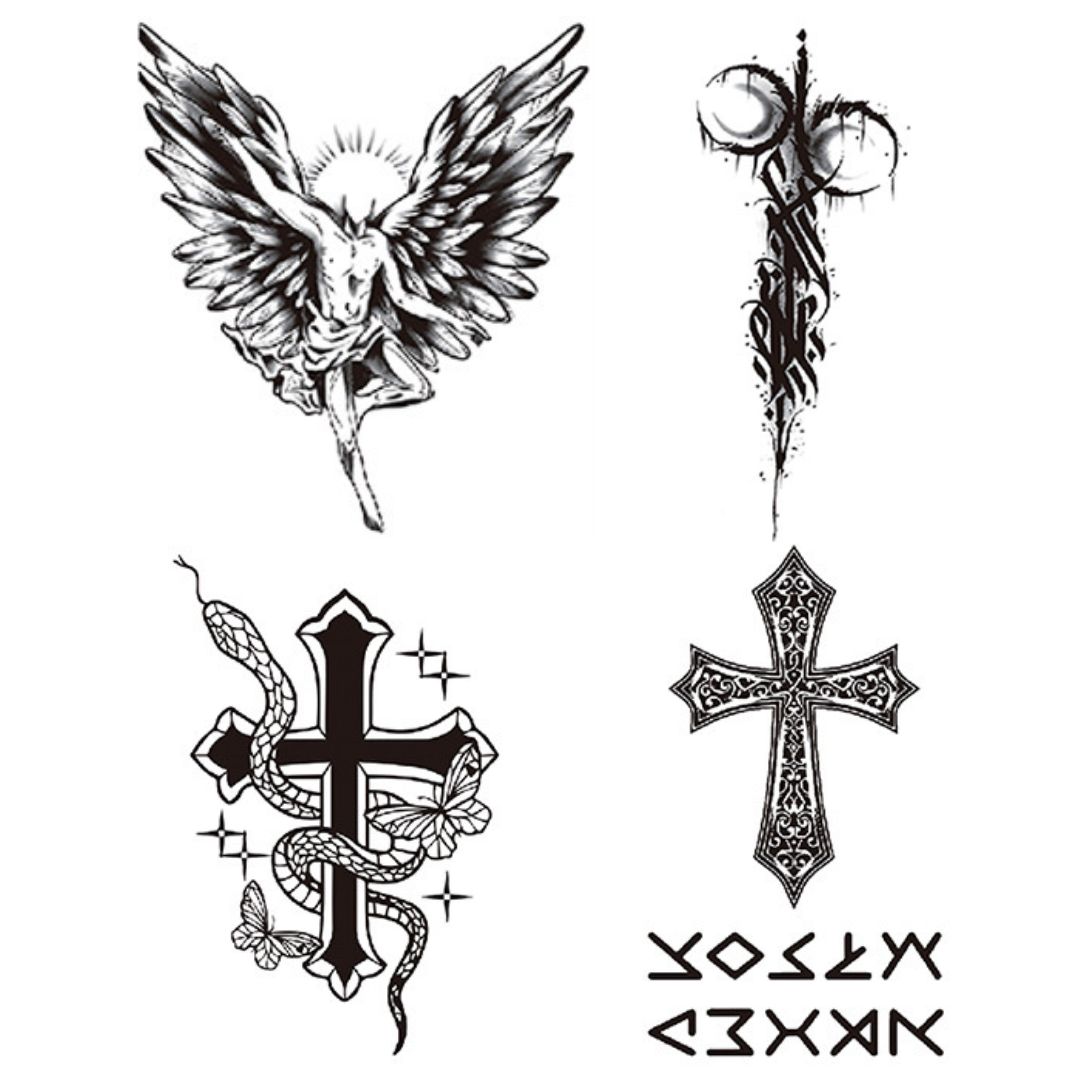 4 Sheet Angel Cross Symbol Half Arm Extra Large Temporary Tattoos