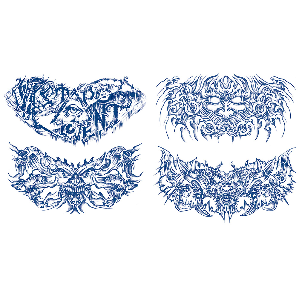 4 Sheets Demon Devil Art Chest Shoulder Semi Permanent Tattoos
