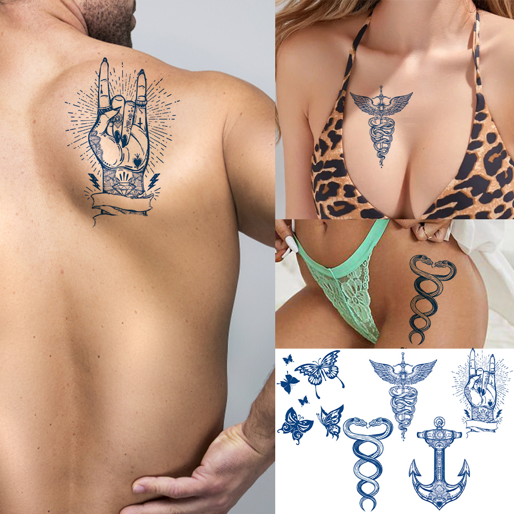 Fruit juice tattoo: Semi-permanent tattoos use fruit juice extracted from the Genipa fruit. which originates from the Americas. Due to the nature of this herbal juice. the tattoo will initially appear colorless. The color will gradually develop within 24-72 hours. depending on individual skin type and metabolism. It is important to avoid touching the tattoo ink before it completely dries. This typically takes around 1-2 hours. but the drying time may vary based on the tattoo's level of dryness. Additionally. please refrain from touching other areas of your body. especially your face. before the tattoo becomes visible. Otherwise. there is a risk of transferring the ink. which may be difficult to remove quickly.