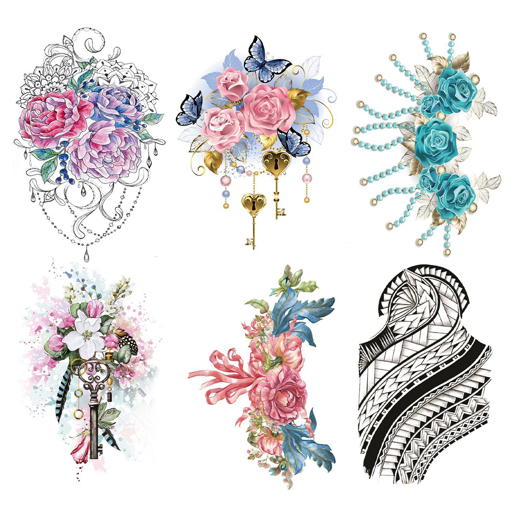 6 Sheet Dimond Jewelry Flower Extra Color Large Temporary Tattoos