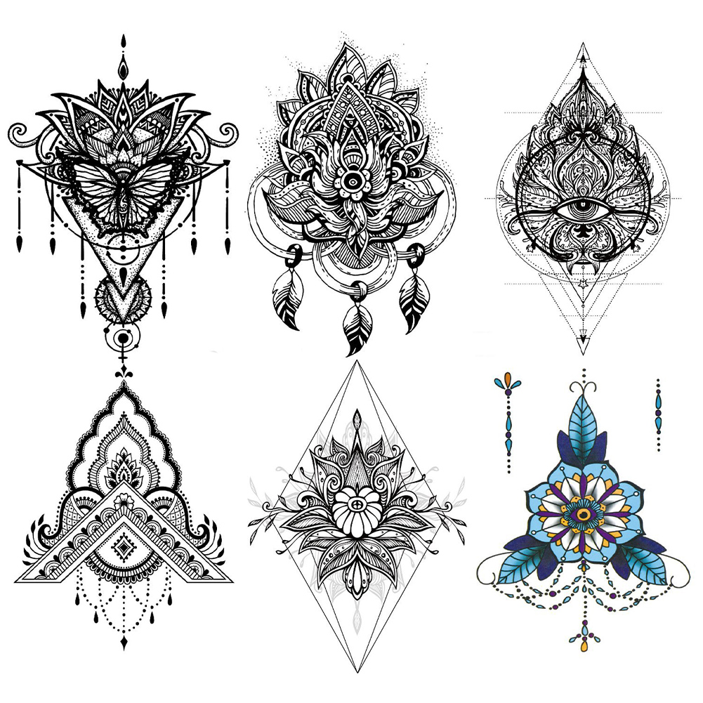 6 Sheet Mandala Design Extra Color Large Temporary Tattoos